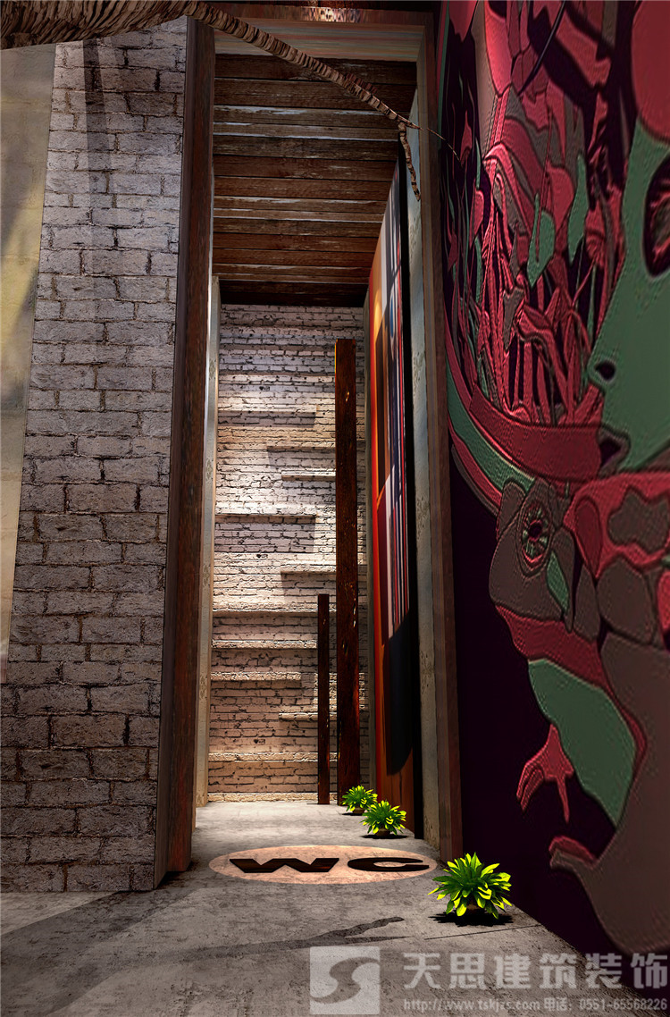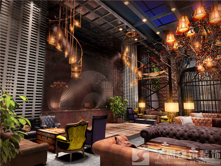 逆向思維的設(shè)計(jì)方式可見(jiàn)一斑,元素多為金屬鋼鐵、老榆木、清水混凝土等自然普通材質(zhì)。當(dāng)這些材質(zhì)與彩色燈帶彼此碰撞,律動(dòng)感瞬間迸發(fā)而出,同時(shí)他巧妙運(yùn)用反襯和撞色技巧塑造了空間,并未刻意用常規(guī)的大面積燈光來(lái)營(yíng)造絢麗空間,反而有意料之外的驚喜。鏤空隔斷打造開(kāi)放式格局,讓每一位顧客感受到流暢開(kāi)闊的空間構(gòu)造,敞開(kāi)心扉放肆的在I FINE酒咖尋找自我。