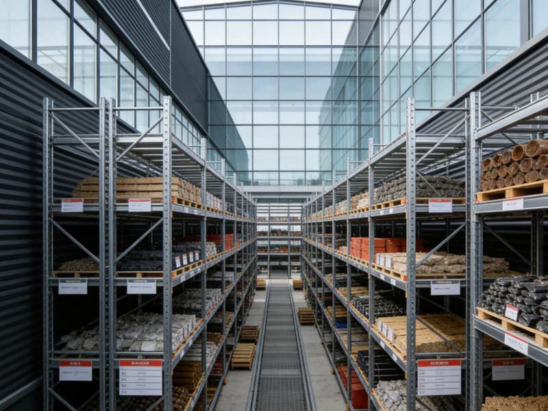 原料存儲區(qū)運(yùn)用立體式金屬貨架,極大提升空間利用率,不同類別的原料分區(qū)明確,標(biāo)識清晰,方便取用與管理。