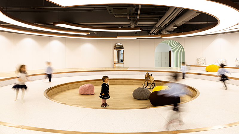 兒童喜歡通過身體來丈量和感知空間.因此,創(chuàng)造符合兒童生理尺度的空間能夠激發(fā)更多的行為方式.兒童也常喜歡待在自己可觸摸到的小空間中.設(shè)計(jì)創(chuàng)造出的空間價(jià)值可以賦予使用者特殊的魔力,在豐富多樣的教娛空間中,每一個(gè)孩子都是不受束縛的夢(mèng)想家.用簡潔明亮的色彩把控,勾勒出空間內(nèi)不失童趣的高級(jí)質(zhì)感,培養(yǎng)孩子的基礎(chǔ)美學(xué)與審美素養(yǎng),正是空間帶來的啟蒙.