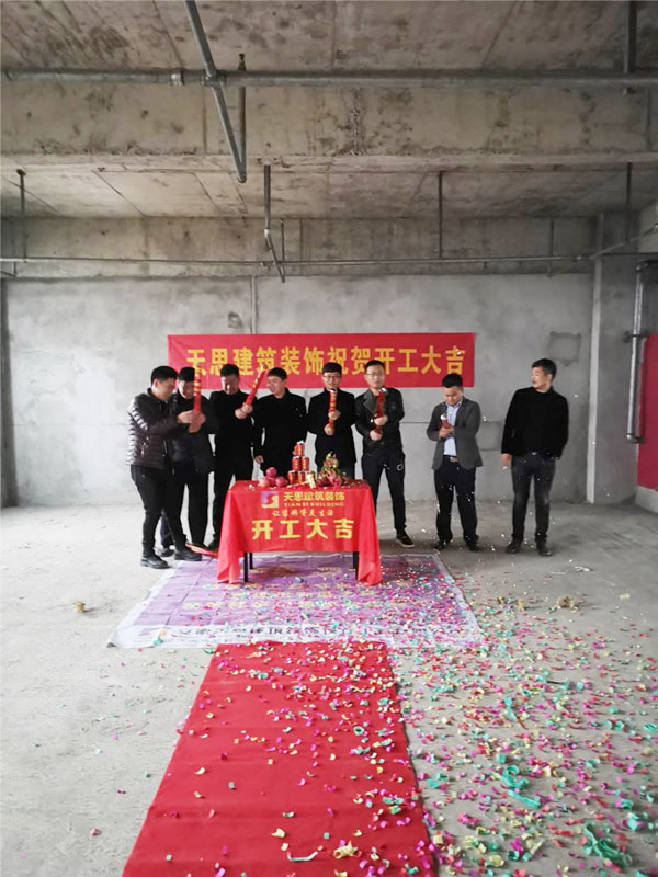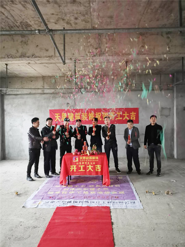 開工現(xiàn)場,客戶與天思裝飾工程部負責人,項目經(jīng)理都來到了現(xiàn)場