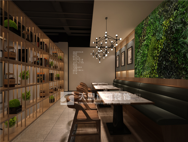 花草盆景被設計師裝飾在空間的每一個角落,目的就是希望讓自然氣息充滿在整個空間之中,整個空間不僅有人文情懷,同時也有自然情懷。在這里就餐是一種享受,優(yōu)美的室內環(huán)境讓客戶對此流連忘返,美味的菜肴+優(yōu)美的就餐環(huán)境,正是餐廳的競爭優(yōu)勢所在。