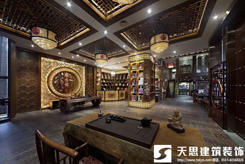 照明重在營造氣氛,要與建筑結(jié)構(gòu)和室內(nèi)外環(huán)境、布置相協(xié)調(diào),勾勒出現(xiàn)代美好的光環(huán)境。茶藝館大廳照 明需“亮”,這與品茶要聞其香,觀其色相關(guān)。晶色,即觀茶之湯色,是品茶中一個(gè)重要環(huán)節(jié),不可忽視。而雅座包廂,可適當(dāng)用能調(diào)節(jié)的燈,在情調(diào)中細(xì)晶漫啜。照明是現(xiàn)代之韻,而燈具則要用中國傳統(tǒng)式的造型為妙。走廊、圍欄最好用黑胡桃木,那天然的質(zhì)感,使其透露出原始,以及擺放紅豆杉樹樁做成的品茗桌、凳,會有使人還樸歸真之感。掛名人字畫,要有選擇以適合茶藝館如“梅、蘭、竹、菊”四君子配以茶詩,或以名茶為主題的書畫及詠茶詩詞,用對聯(lián)、扇面形式也很好,特別是茶館楹聯(lián),會添增其品飲之情趣。至于木雕、石刻可采用明清古董,也可根據(jù)所需雕刻。陶瓷是中國的象征,又是與茶有直接相關(guān)之器皿,景德鎮(zhèn)精制瓷瓶與宜興紫砂壺放在博古架上會使茶藝館古樸雅致,中國味特濃。在寧靜的氛圍中,絲竹聲聲和茶藝表演,四季時(shí)花擺放,使茶藝館飄著淡淡的幽香,造成了獨(dú)特的品茗環(huán)境,在這樣的茶藝館中能尋找古典的人文韻味,又享受現(xiàn)代文明生活的樂趣。