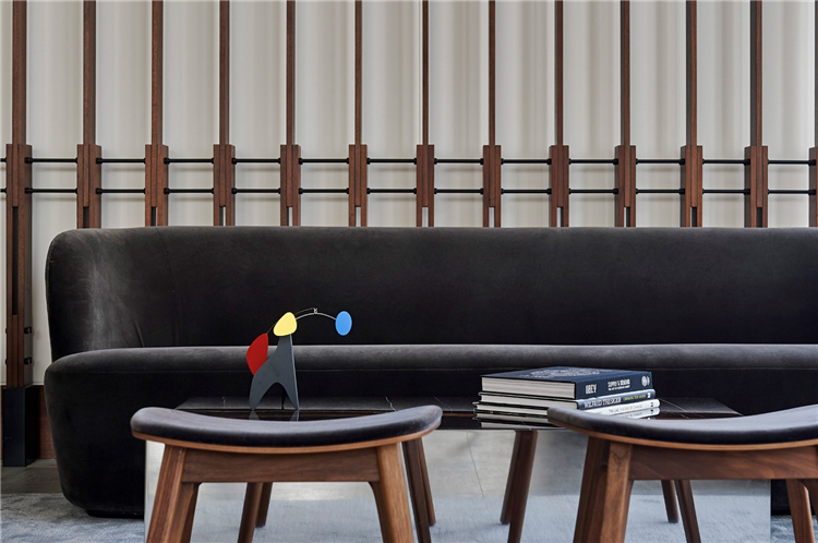 餐廳位于大堂旁邊,由木條幕墻隔開,而不是墻壁,目的是鼓勵人們在兩個空間之間自由移動。“當(dāng)你走進(jìn)大堂時,你會注意到餐廳空間和大堂區(qū)域之間的無縫,我們希望人們?nèi)於寄苡行У乩眠@個空間,這樣你就不會覺得自己被封閉在一個特定的區(qū)域里。”