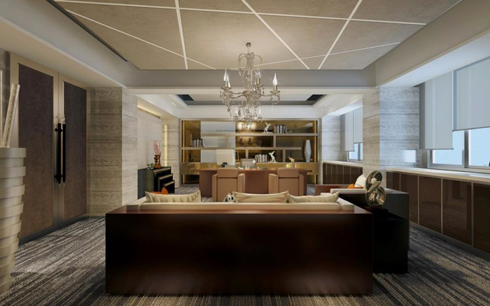 3、有質(zhì)感的辦公室設(shè)計(jì):設(shè)計(jì)師通過(guò)簡(jiǎn)化前臺(tái)裝飾元素來(lái)凸顯簡(jiǎn)介的企業(yè)標(biāo)識(shí),讓綠植承載的環(huán)保元素更加醒目,同時(shí)也強(qiáng)調(diào)了企業(yè)的科技感。在設(shè)計(jì)前方接待區(qū)的時(shí)候,充分運(yùn)用了自然色+燈光的組合來(lái)強(qiáng)化企業(yè)內(nèi)涵體驗(yàn)。沙發(fā)、地毯、茶幾與落地?zé)粼陂_放的空間里構(gòu)建了一個(gè)心理上私密的會(huì)客區(qū)域,具有濃濃的現(xiàn)代科技?xì)庀ⅰ⒖臻g劃分為辦公區(qū)域、交流區(qū)域、展示區(qū)域,在設(shè)計(jì)師看來(lái)總經(jīng)理辦公室相當(dāng)于一個(gè)小型的迷你辦公室,既要具備多重功能,又要做到空間內(nèi)部的辦公與配套系統(tǒng)的完整與契合。通過(guò)地毯、精選的辦公桌椅,并且結(jié)合不同區(qū)域燈光的變化讓辦公空間具有層次感。