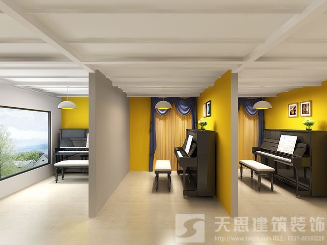 琴行裝修注意事項: 鋼琴、銅管樂以及架子鼓的聲音穿透力很大,特別是鼓,如果琴行教室的隔音效果做得不好的話,凡是鼓的教學一開始,其他任何的教學都不能很好地開展下去。鼓