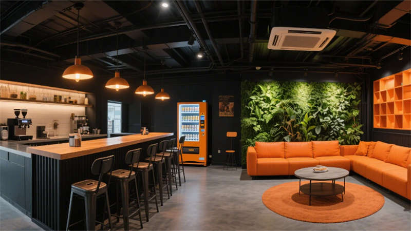 人性化細(xì)節(jié)貫穿各區(qū)域:電梯廳導(dǎo)向系統(tǒng)與隱藏式消防設(shè)施實(shí)現(xiàn)功能隱形化,員工休息區(qū)混搭工業(yè)風(fēng)吧臺(tái)與暖光沙發(fā),搭配咖啡機(jī)與綠植墻釋放壓力。設(shè)計(jì)同步植入環(huán)保理念,采用低能耗照明系統(tǒng)、空氣監(jiān)測(cè)模塊及可回收建材,構(gòu)建健康可持續(xù)的辦公生態(tài),傳遞企業(yè)面向未來(lái)的品牌價(jià)值觀。