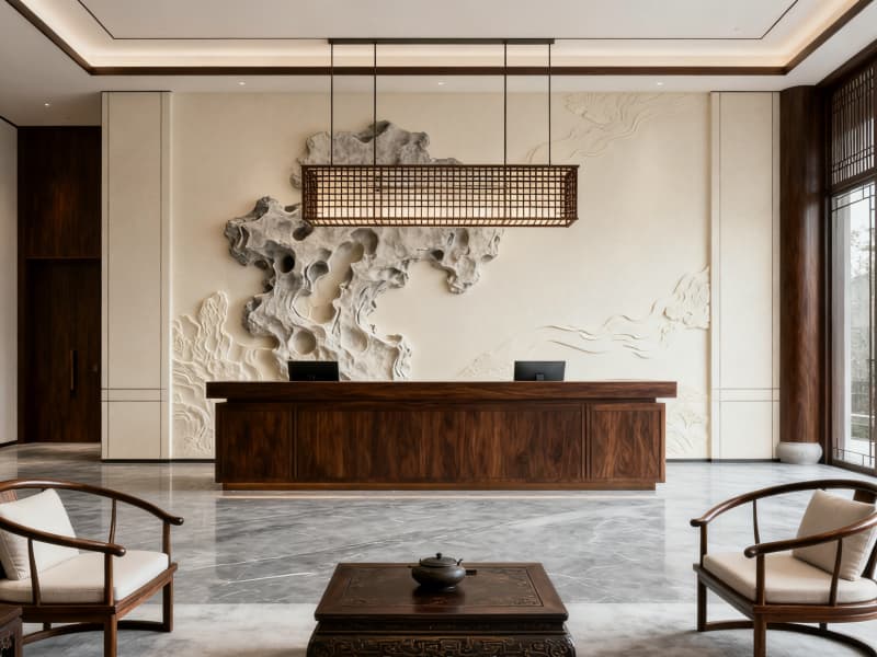 細(xì)節(jié)設(shè)計中,將宿州文化元素巧妙融入,如靈璧石紋理背景墻、仿漢闕入口景墻、非遺手工藝品陳列等,增強空間的地域認(rèn)同感;同時注重人性化與實用性,采用人體工學(xué)家具、智能感應(yīng)設(shè)備、隱形收納系統(tǒng)等,提升辦公舒適度與空間利用率。整體設(shè)計既滿足現(xiàn)代商務(wù)辦公的高效需求,又通過中式美學(xué)與地域文化的融合,為企業(yè)打造獨具格調(diào)的辦公環(huán)境。