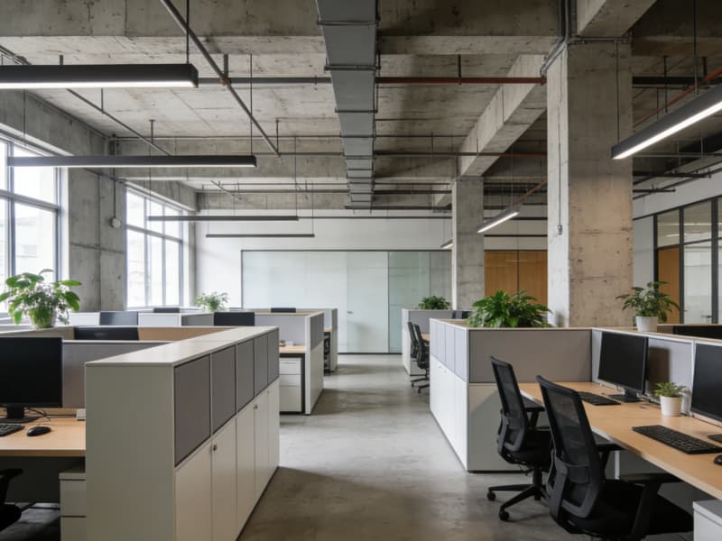 走進廠房內(nèi)部,生產(chǎn)區(qū)域空間開闊,挑高的設計為大型生產(chǎn)設備提供了充足的安置空間。頂部采用裸露的鋼結(jié)構(gòu)桁架,搭配軌道式照明燈具,既滿足了生產(chǎn)作業(yè)對照明的需求,又強化了工業(yè)氛圍。地面鋪設耐磨的水泥自流平,堅固耐用且便于清潔,符合工業(yè)生產(chǎn)的實際要求。生產(chǎn)設備按照工藝流程有序排列,各區(qū)域之間設置了寬敞的運輸通道,確保物流運輸?shù)捻槙掣咝А?br />