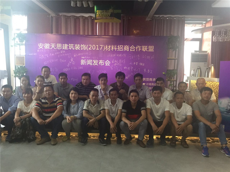 2017年6月4日,安徽天思建筑裝飾(2017)材料招商合作聯(lián)盟新聞發(fā)布會在合肥公司召開,來自合肥的三十余家知名材料商代表與天思裝飾公司領導齊聚一堂,共敘商情。在天思這個平臺上