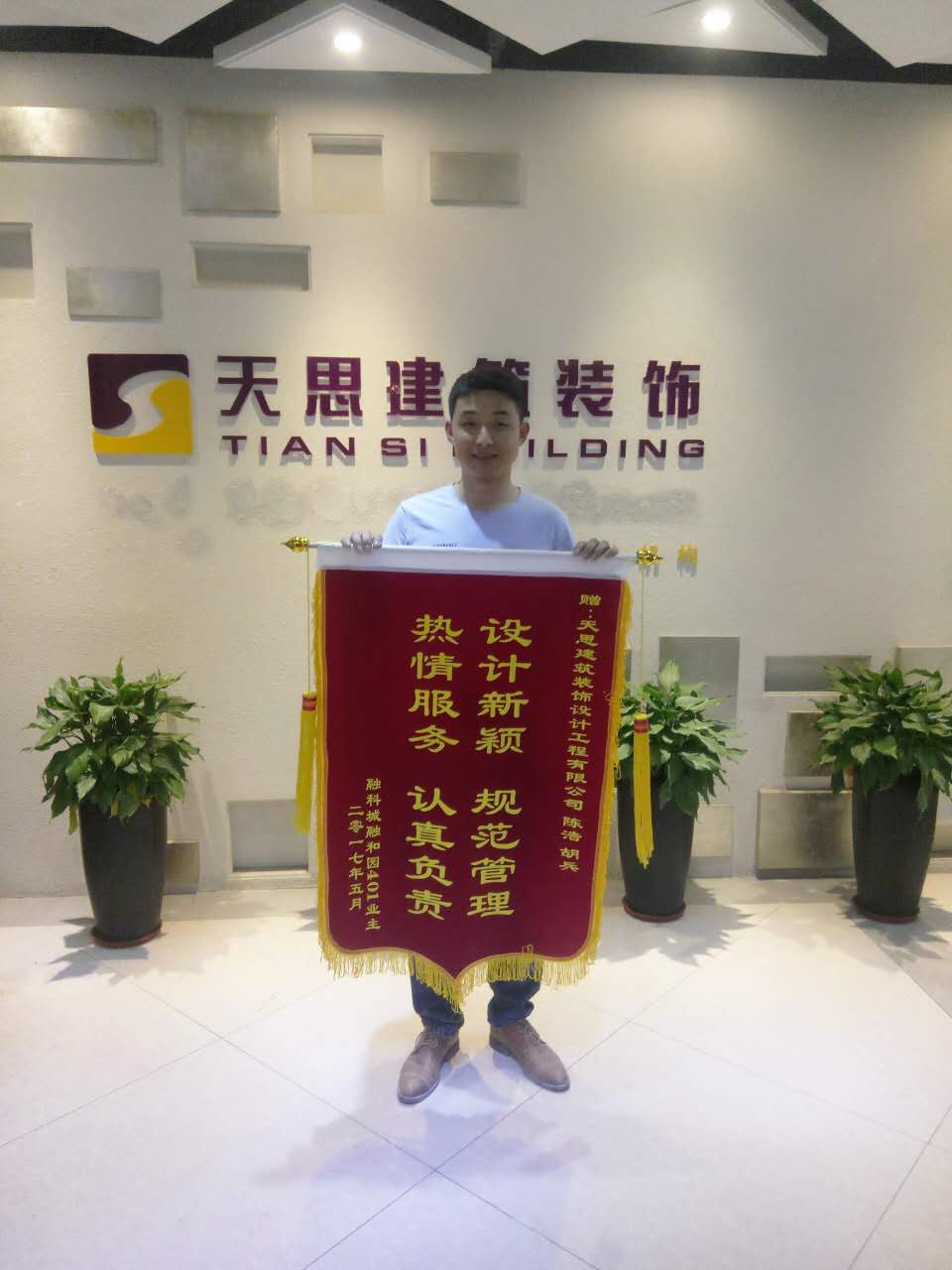這一次的裝修讓業(yè)主倍感輕松,我們天思的工作人員也非常開心。業(yè)主送的錦旗不僅僅是一種榮譽(yù),更是業(yè)主朋友對天思工作態(tài)度的肯定和認(rèn)可,是讓我們天思向更高的目標(biāo)邁進(jìn)的強(qiáng)大動力。期待以后的我們能用更專業(yè)的質(zhì)素和更好服務(wù)態(tài)度為更多的業(yè)主實(shí)現(xiàn)自己的家具夢想,真真正正的為業(yè)主省時、省心、省力、省錢!