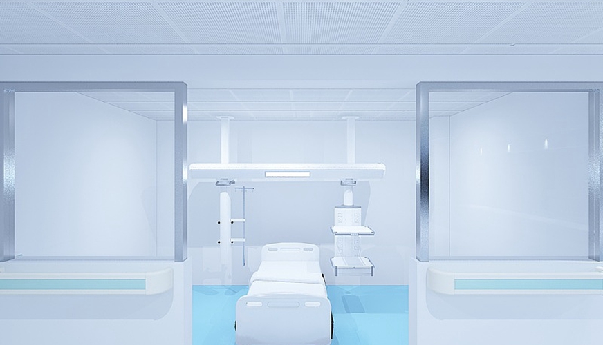 在本案中,設計師一改醫(yī)院的常規(guī)風格,大膽使用了藍色為基調(diào).藍色向來代表著冷靜、睿智,也能起到平復人們情緒的暗示作用,這次使用在醫(yī)院中,更充滿了科技感.為與醫(yī)院定位相匹配,室內(nèi)并無多余的裝飾品,干凈、清爽是本次設計的最大特點.同時,設計師也非常注重空間細節(jié)的營造,如醫(yī)院的導視,就從病人的角度考慮,清晰顯眼,指向明確.