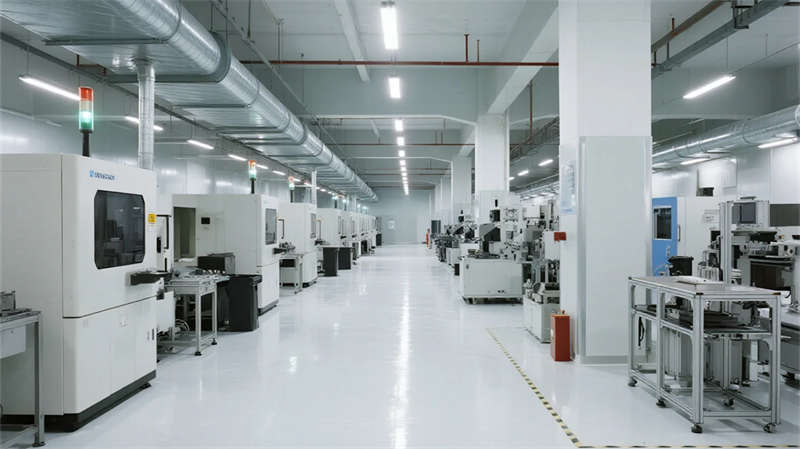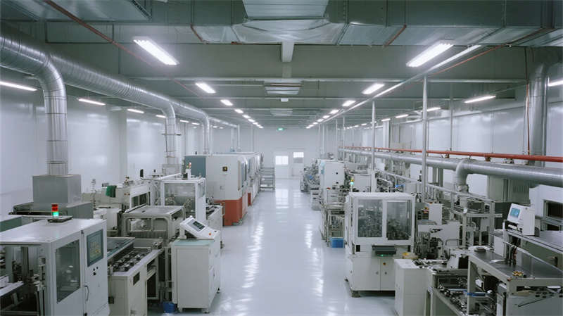 內(nèi)部空間延續(xù)"少即是多"哲學(xué):生產(chǎn)車(chē)間以銀白為主調(diào),設(shè)備管線(xiàn)規(guī)整排布于頂棚,環(huán)氧地坪反射線(xiàn)性燈光,營(yíng)造科技感十足的無(wú)塵環(huán)境;辦公區(qū)突破傳統(tǒng)隔斷,玻璃幕墻引入外部景觀,綠植墻自然劃分區(qū)域,形成通透開(kāi)放的協(xié)作場(chǎng)域。