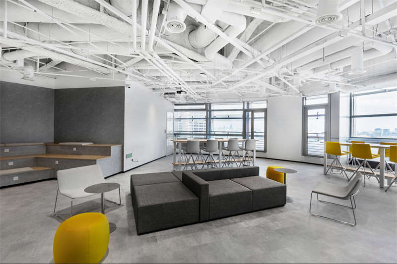以方塊切割空間,幾何造型的演變、堆疊,創(chuàng)建出矩陣空間的實體形態(tài)。白色,灰色,明黃充斥,隨意散落在空間中,看似不經(jīng)意的堆砌,卻是空間中不可忽視的點綴。