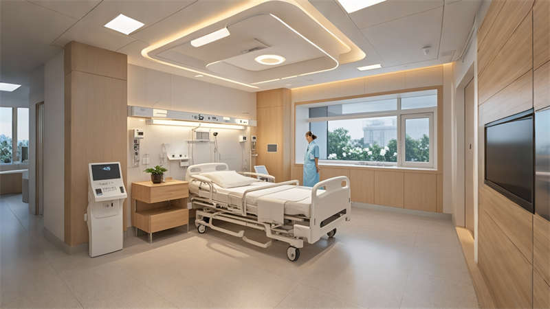本8000㎡現(xiàn)代醫(yī)院設(shè)計(jì)以 ' 療愈型智能醫(yī)療 ' 為核心理念,采用模塊化空間布局。門診區(qū)運(yùn)用淺藍(lán)灰主調(diào)配木紋元素,通過(guò)色彩心理學(xué)緩解患者焦慮;醫(yī)技區(qū)采用高反射率材料增強(qiáng)空間通透感。創(chuàng)新性整合智能導(dǎo)診、空氣質(zhì)量管理及醫(yī)療物流系統(tǒng),病房單元設(shè)置多模式照明系統(tǒng),兼顧醫(yī)療操作與患者休憩需求。環(huán)??咕牧先采w,關(guān)鍵區(qū)域配置跌倒預(yù)警地膠系統(tǒng)。屋頂療愈花園突破傳統(tǒng)醫(yī)療空間限制,形成立體綠化體系。整體設(shè)計(jì)實(shí)現(xiàn)醫(yī)療功能、人文關(guān)懷與智能科技的有機(jī)融合,打造新一代智慧醫(yī)院樣板。