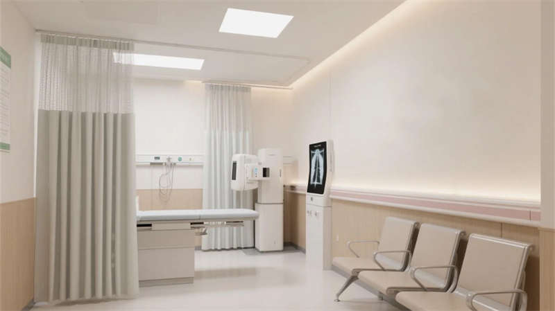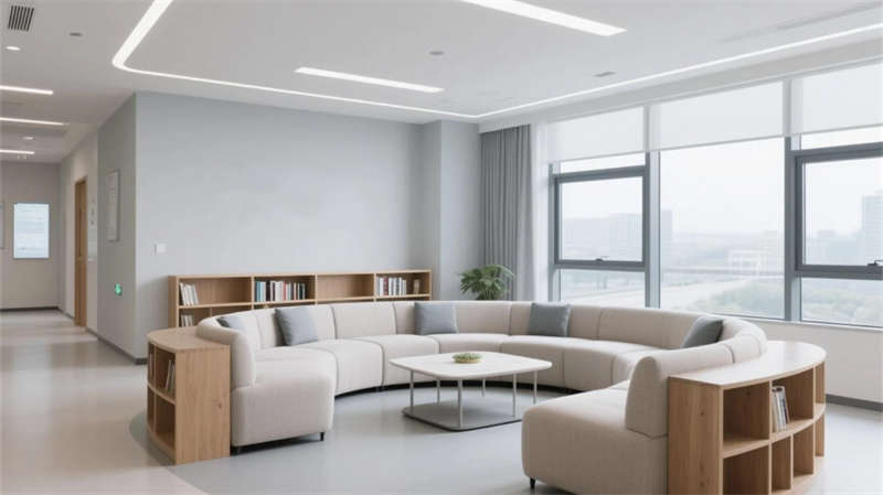 該社區(qū)醫(yī)院設計以現(xiàn)代簡約理念為核心,營造出溫馨而高效的醫(yī)療環(huán)境。整體空間強調(diào)人性化布局,接待大廳寬敞明亮,弧形接待臺與自然光結合,營造親切的第一印象。候診區(qū)舒適寧靜,沙發(fā)與書架的點綴減輕等待焦慮,診室則注重隱私與專業(yè)感,柔和色調(diào)提升患者信任。藥房設計簡潔清晰,便于快速取藥,急診室布局高效,確保緊急響應流暢?;炇液陀跋窨仆怀龉δ苄?,無菌環(huán)境與設備集成保障精準診療,康復區(qū)開放通透,綠植與自然光促進身心恢復。所有區(qū)域統(tǒng)一運用中性色調(diào)、木質(zhì)元素和流線型家具,強化視覺連貫性,同時融入充足采光與綠意,打造舒緩氛圍。設計不僅提升醫(yī)療體驗,還呼應了合肥的城市人文特色,為居民提供一處安心、便捷的健康港灣。