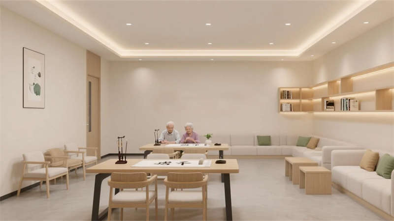 溫馨自然居所,合肥老年康養(yǎng)中心裝修設(shè)計(jì)效果圖