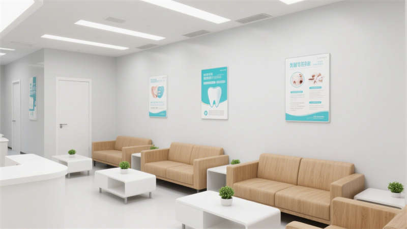 在視覺呈現(xiàn)上,以低飽和度的中性色為基礎(chǔ),搭配局部溫潤(rùn)的軟裝元素,營(yíng)造出專業(yè)且溫和的氛圍,緩解患者就診時(shí)的緊張情緒。材質(zhì)選擇上,優(yōu)先考慮易清潔、耐磨損的環(huán)保材料,兼顧實(shí)用性與健康需求。整體設(shè)計(jì)無冗余裝飾,以簡(jiǎn)潔的形態(tài)承載功能,讓空間既符合口腔醫(yī)療的專業(yè)屬性,又傳遞出舒適、安心的體驗(yàn)感。
