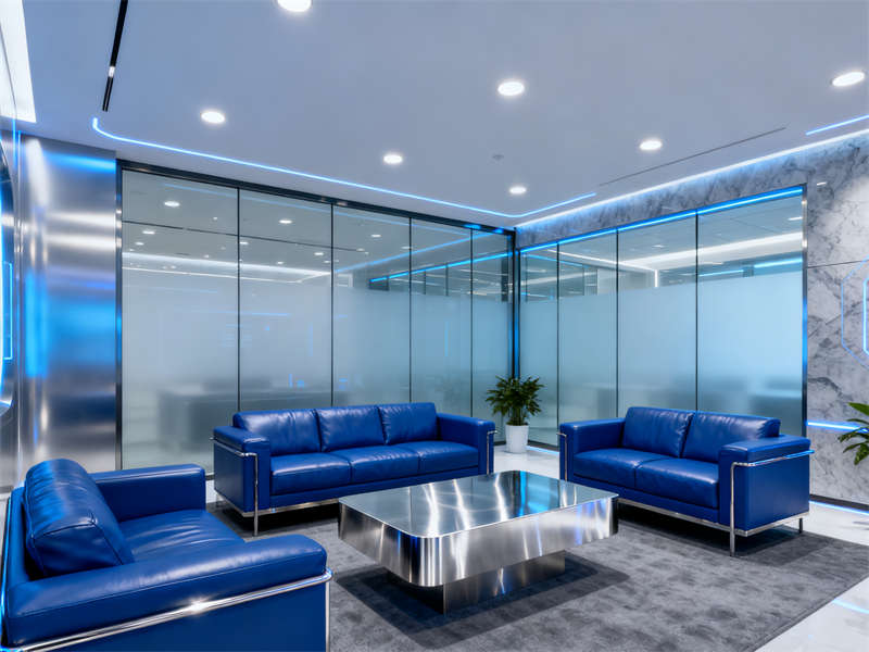 本設(shè)計(jì)以半導(dǎo)體行業(yè)的科技屬性為核心,打造出兼具專業(yè)性與體驗(yàn)感的展廳空間。整體裝修風(fēng)格采用簡(jiǎn)約現(xiàn)代風(fēng),以冷靜的淺灰色為主色調(diào),搭配科技感十足的藍(lán)色線條與燈光,營(yíng)造出符合半導(dǎo)體領(lǐng)域嚴(yán)謹(jǐn)、前沿的氛圍,同時(shí)讓整個(gè)展廳在視覺上保持統(tǒng)一和諧,從入口到各個(gè)功能區(qū)域,風(fēng)格過渡自然,不存在突兀感。?