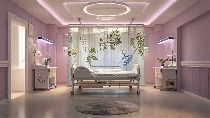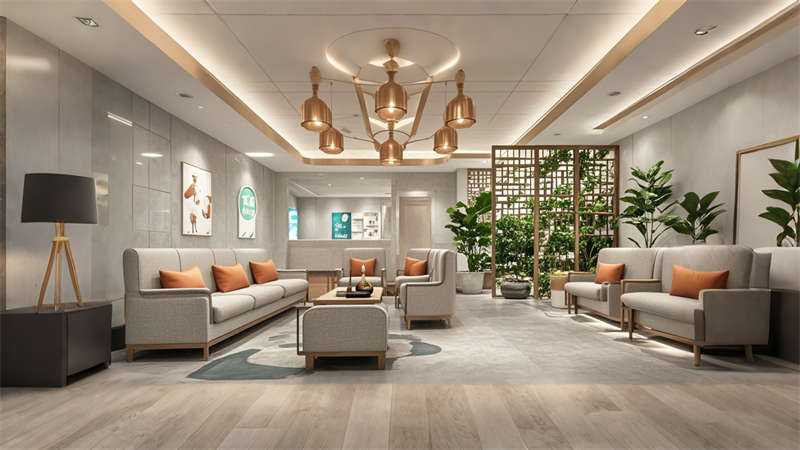 本2000平中醫(yī)院設(shè)計融合傳統(tǒng)中醫(yī)文化與現(xiàn)代醫(yī)療功能,采用 ' 療愈之境 ' 核心理念??臻g規(guī)劃采用 ' 回' 字形動線,門診、診療、康復(fù)三大功能模塊環(huán)繞中央庭院布局。色彩體系以米白、淺灰為基底,點綴赭石、黛青等傳統(tǒng)中藥色彩,墻面肌理漆模擬紙張質(zhì)感呼應(yīng)古籍文獻(xiàn)。診療區(qū)域采用模塊化隔斷系統(tǒng),兼顧隱私與通風(fēng)需求。智能照明系統(tǒng)可模擬晝夜節(jié)律變化,候診區(qū)座椅集成無線充電功能。重點區(qū)域設(shè)置 AR 中醫(yī)文化互動裝置,住院部走廊每 10 米設(shè)置中藥香薰擴(kuò)散點。材料選擇注重環(huán)保性與耐久性,地面采用防菌 PVC 卷材,墻面使用易清潔的納米涂層。整體設(shè)計通過現(xiàn)代設(shè)計語言詮釋中醫(yī) ' 天人合一 ' 理念,打造兼具專業(yè)醫(yī)療功能與人文關(guān)懷的現(xiàn)代化中醫(yī)院空間。